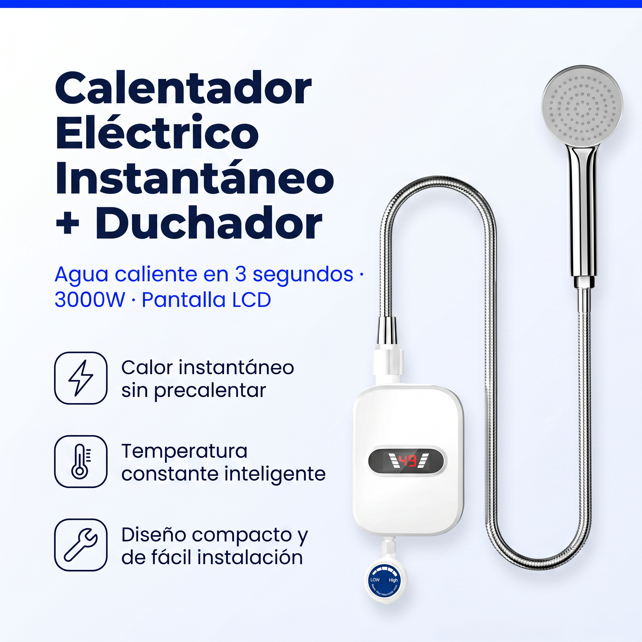 ⚡ Calefacción instantánea 3 seg — Elemento calefactor de alta eficiencia 3000W