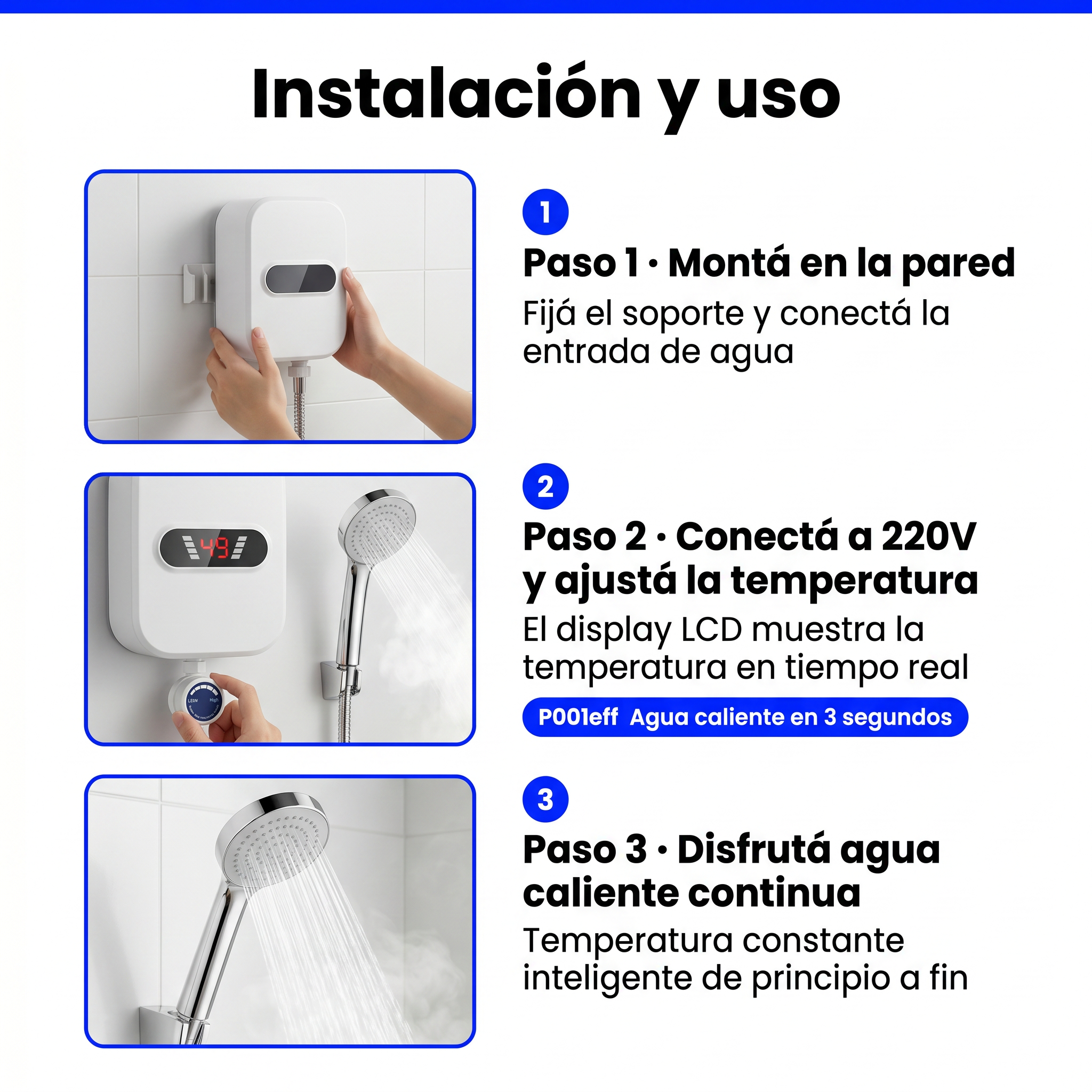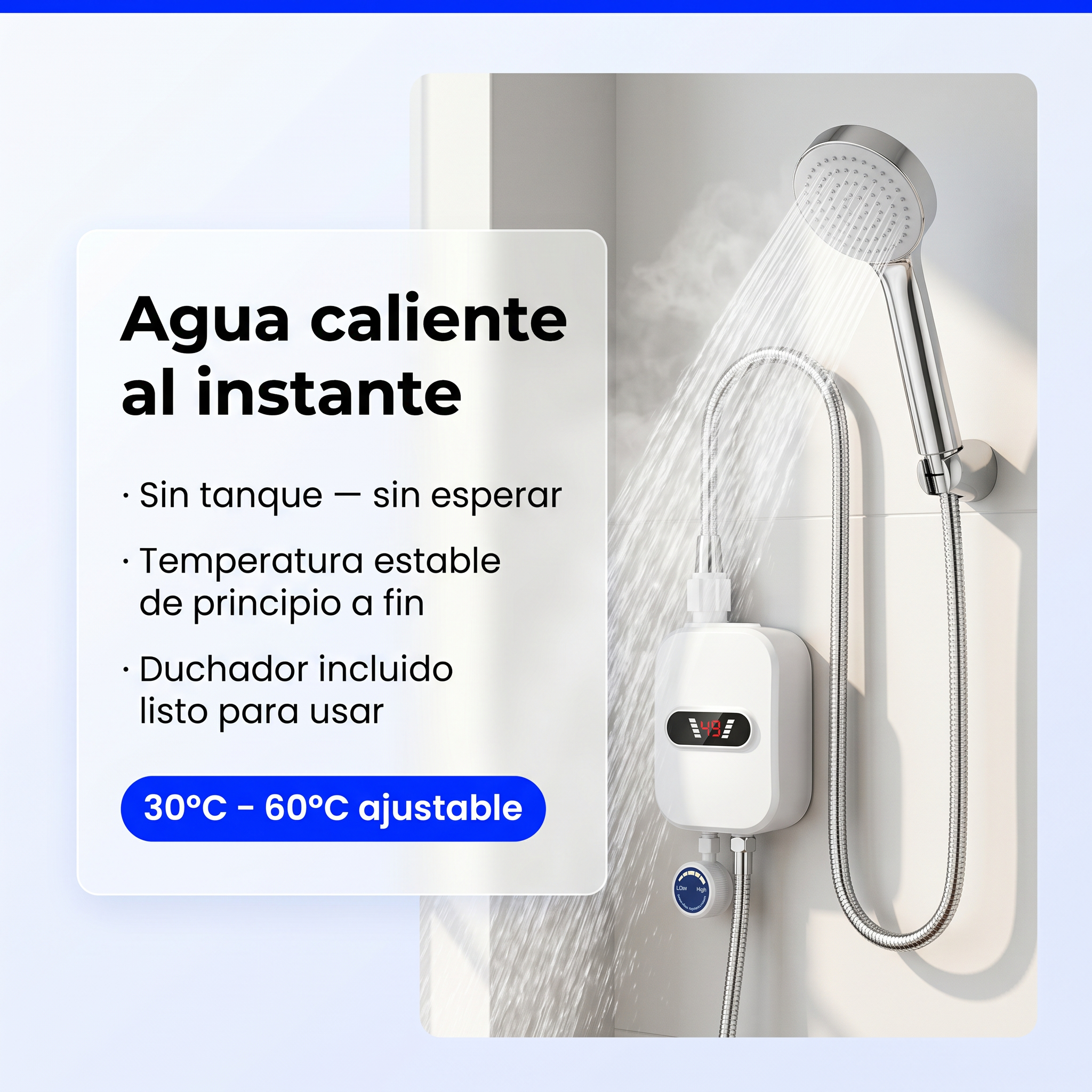Disfrutá agua caliente continua — temperatura constante inteligente.